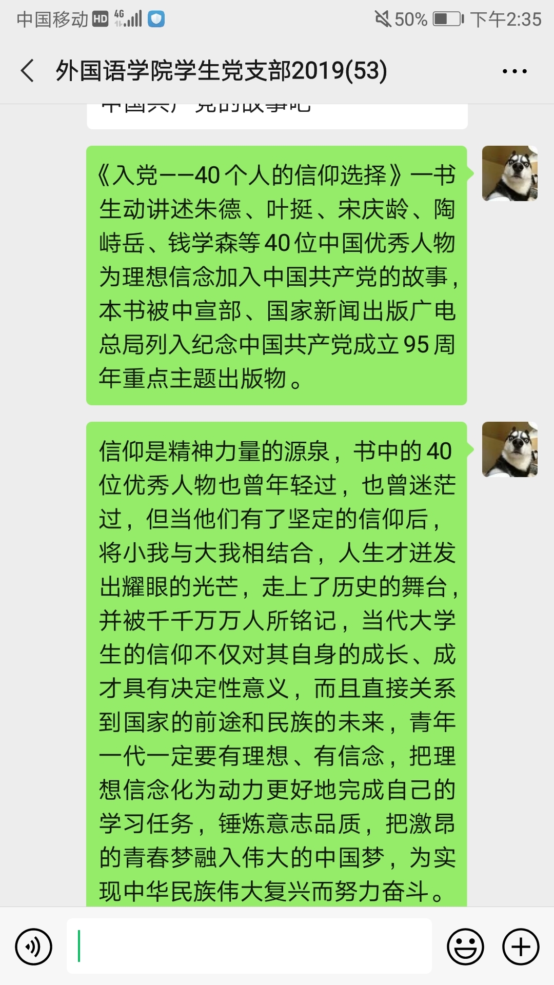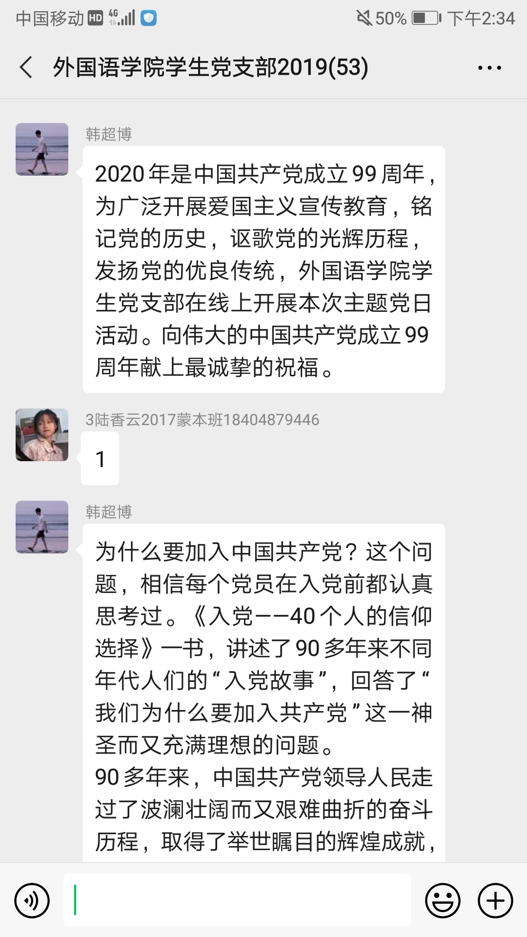 6月29日365best体育官网登录员工党支部书记王晨雪老师、副书记海艳老师及全体成员在线上分享了阅读《入党——40个人的信仰选择》之后的所思所感所悟。