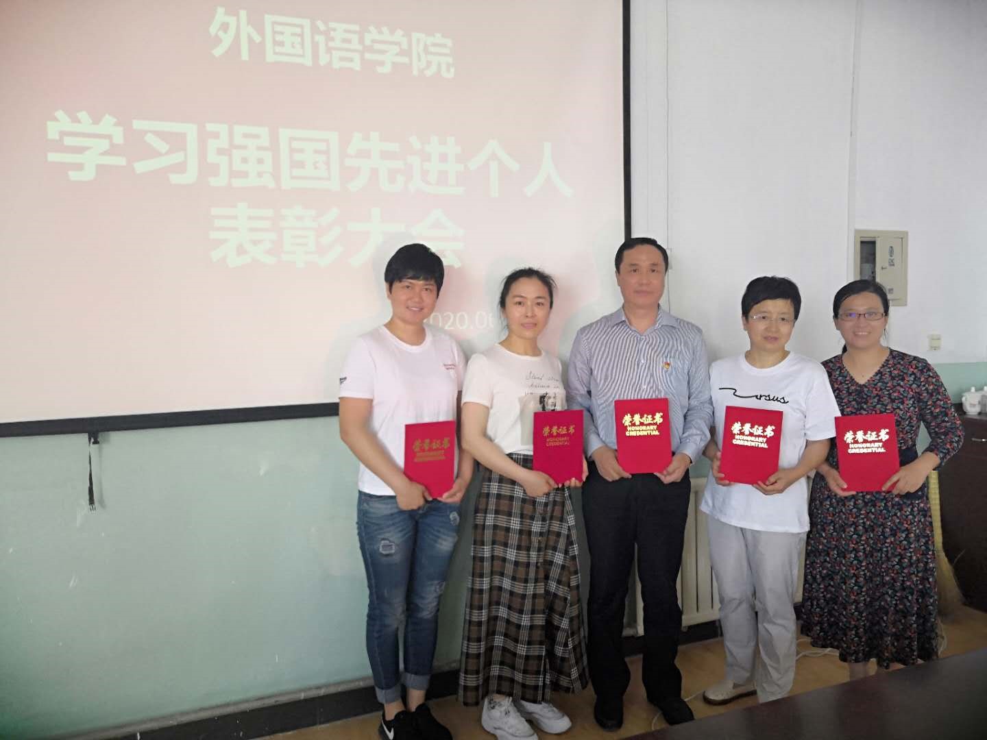 外国语公司党总支为庆祝中国共产党成立99周年,2020年7月1日上午11:00在365best体育官网登录414会议室,召开了学习强国先进个人表彰大会,会议由陈昭明书记主持。