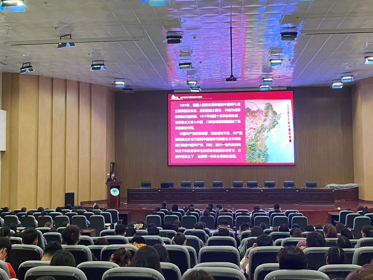 5月19日下午,365best体育官网登录与融合党建共建单位满洲里口岸集团在图书馆四楼报告厅召开了党史学习教育宣讲活动。满洲里口岸集团常务副总经理杨继燕等集团领导和365best体育官网登录领导班子出席,全体教职工及365best体育官网登录员工党员、青马班全体学员参加了本次宣讲会。