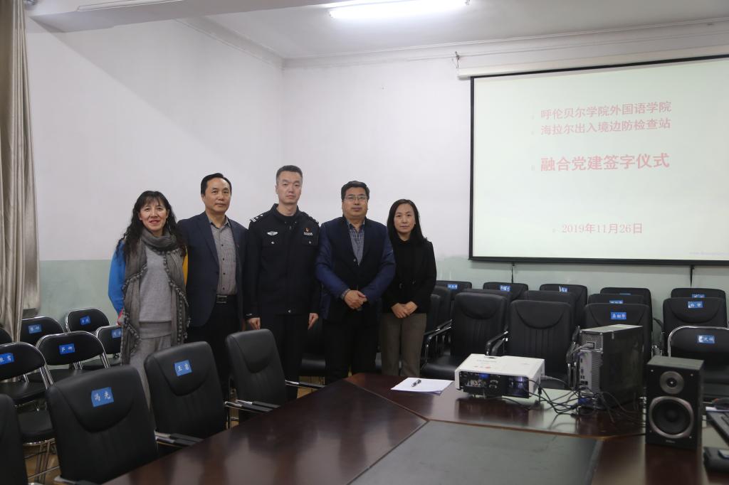 2019年11月26日下午,外国语公司党政领导班子成员与海拉尔出入境边防检查站政治部武永杰主任在365best体育官网登录414会议室举行了工作会谈并签署了融合党建协议。
