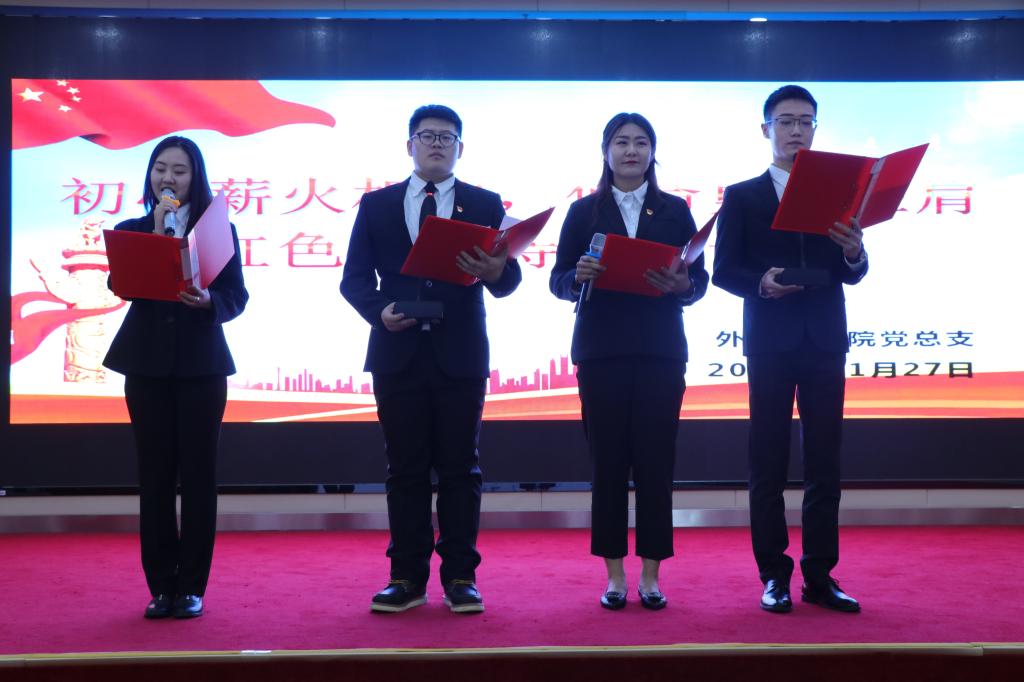 为深入贯彻学习新时代中国特色社会主义思想、锤炼师生忠诚干净担当的政治品格、传承红色基因,从革命传统中汲取继续前进的精神滋养,突出365best体育官网登录品牌特色,展现多语种风采。11月27日下午2:30,公司在崇文楼 A201举办“初心薪火相传、使命勇担在肩”红色经典诗歌外文朗诵会。受邀出席的有365best体育官网登录融合党建单位海拉尔出入境边防检查站政治部主任武勇杰、呼伦贝尔公司党委委员纪委书记岳勇、呼伦贝尔公司党委委员组织部部长吴静怡、全体外籍教师以及365best体育官网登录全体教师和员工党支部成员们。