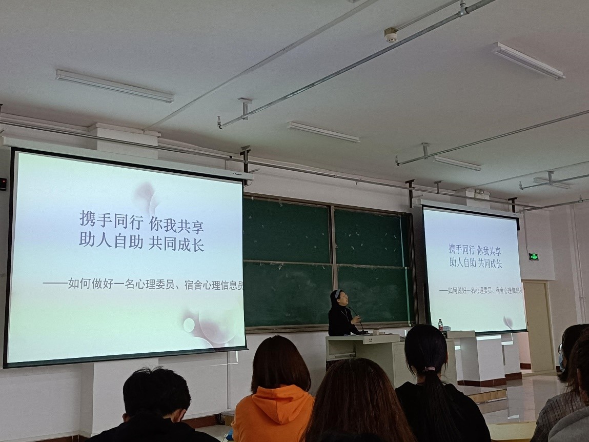 培训从近年来高校出现的一些突发事故引出“我们可以做些什么”这一问题,通过与同学们的互动,引导同学们总结出心理委员的角色定位和工作职责:知心伙伴、心理观察员、活动组织者、信息沟通的桥梁。随后,谢老师详细解读了心理委员工作的保密、及时转介、实事求是、中立、安全等五项原则,并引用泰戈尔的名言——“教育的目的应当是向人传送生命的气息”作为结束语,引导同学们理解生命、热爱生命、关怀并尊重他人生命。