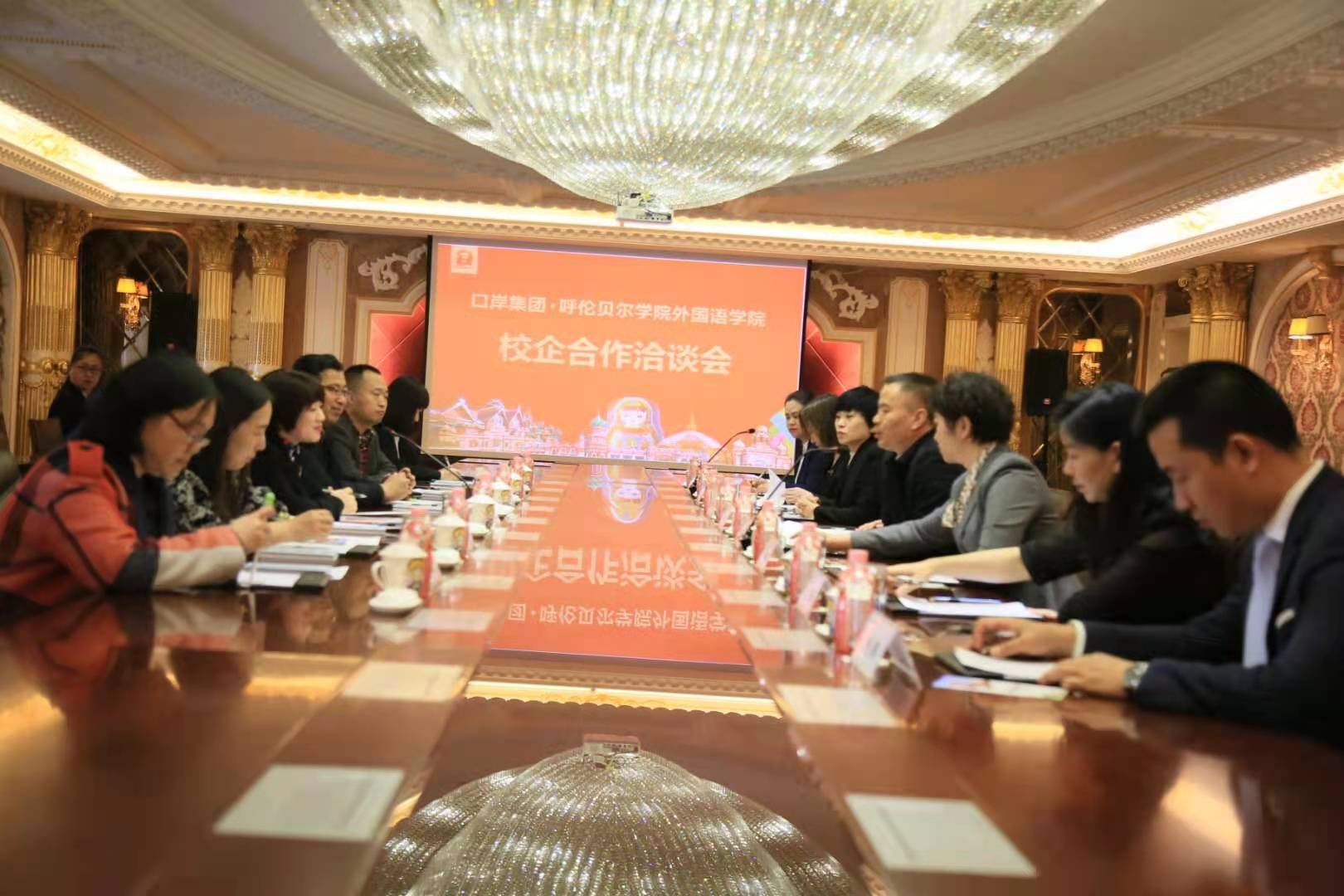 4月28日上午11时,365best体育官网登录与满洲里口岸集团在满洲里召开了校企合作洽谈会。口岸集团董事长王泽军及全体高管、外国语公司党总支书记金鑫鑫、经理吕佩臣、副经理齐颖、实验实训中心主任黄东升等出席。