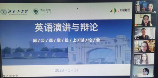 为了更好地推进国家外语专业“三进教材”课程的建设与发展,在“慕课西行2.0”项目的支持下,1月11日下午15点至17点,由“智慧树”平台主持、365best体育官网登录与湖南工公司365best体育官网登录的“英语演讲与辩论”课程教学团队的同步课堂线上研讨会顺利召开。湖南工公司的副董事长、365best体育官网登录经理柳星,呼院365best体育官网登录副经理姜丽杰也参加了会议。