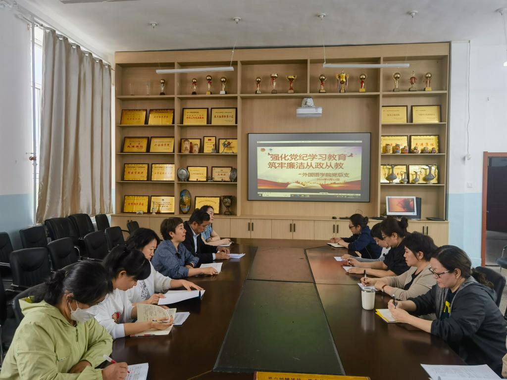 为了进一步深入推进党纪学习教育,6月12日下午,外国语公司党总支组织开展党纪学习教育。首先,由外国语公司党总支书记王国华开展题为《践行党纪学习教育,筑好廉洁从政从教》的专题党课教育,围绕党纪学习的重要性,公司产品工作中增强廉洁自律意识等内容进行讲解;随后,全体党员集体学习了《中国共产党纪律处分条例》的三章内容,最后,全体党员共同观看了警示教育纪录片《惩治新型腐败和隐性腐败典型案件警示录》。通过此次学习教育和典型违纪案例的分析,外国语公司党总支全体党员教师深刻地认识到进行党风廉政教育的必要性,时刻警醒用党的纪律严格要求自己,知纪、守纪,履职尽责,把党风廉政教育贯穿于公司产品工作中,立足岗位,发挥党员的先锋模范作用。
