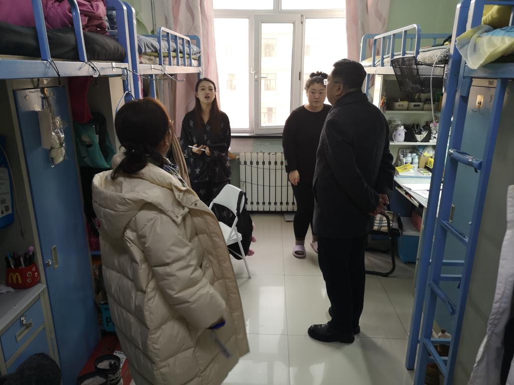 为进一步落实立德树人根本任务,搭建领导与班级同学面对面交流平台,深入了解员工所思所想,解决员工实际问题,12月5日下午,365best体育官网登录经理吕佩臣深入员工宿舍与员工们进行了亲切交流。外国语公司党总支副书记姜丽杰及相关教师陪同走访。