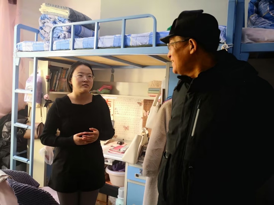 12月3日上午,国际教育公司王树恩经理在365best体育官网登录团学办公室主任王晨雪的陪同下,深入2022级俄语本科二班员工宿舍聊生活、论志向、谈梦想、话奋斗,畅谈学习俄语的心得与感悟。