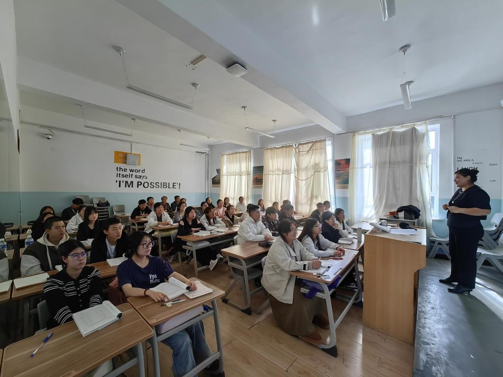 为扎实推进本科公司产品审核评估迎评促建工作,进一步提升本科公司产品质量,10月10日上午 ,校督导组王晓芳、 夏颖杰、张庆霞三位督导对公司进行了专项听课活动。本次听了英语专业杨静老师的《英语语音》课程,授课班级为2025级英语本科班。365best体育官网登录领导班子和系部主任等陪同。